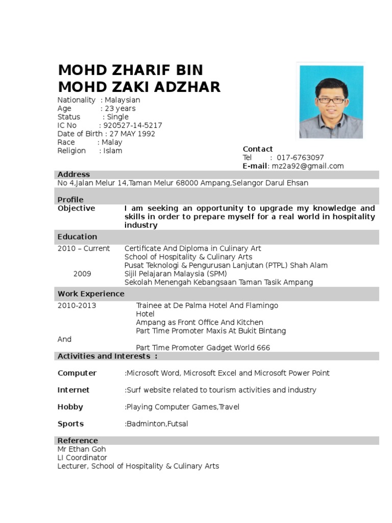 Resume Sample Spm Pdf Malaysia Business